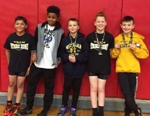Great wrestling today from our Strike Zone kids. 10 kids - 4 Golds, 4 Bronze, and two 4th place finishes. Calvin - 1st place, Lukas - 1st place, Javon - 1st place, Lucas - 1st place, Killian - 3rd place, James - 3rd place, Cameron - 3rd place, and Zaire - 3rd place in his very 1st tournament. Zach - 4th place, and Naim in his very 1st tournament took 4th place, with some great matches loosing one in overtime. Great job by all our kids and coaches. Thanks to Coach Greg and Coach Jeremy for a great day.